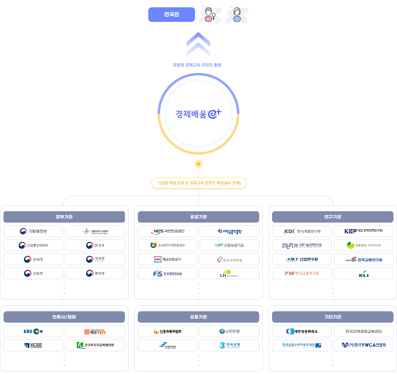• 경제배움e+는 일상생활에서 마주하는 경제 문제를 합리적으로 해결하는 데 도움이 되는 교육 자료와 정보를 제공하기 위해 기획재정부가 구축한 디지털 경제교육 플랫폼입니다.